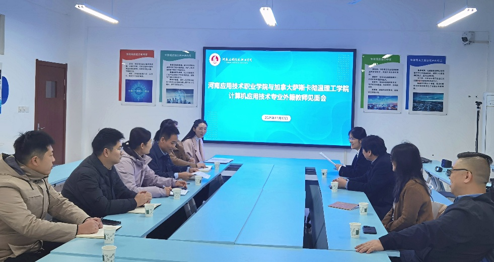 为进一步推进学院中外合作办学项目提质增效,2025年11月17日,学院与加拿大萨斯卡彻温理工学院中加合作办学计算机应用技术专业教学推进会在开封北院举行。中加合作项目主任BruceYu,加拿大外教团队Xin Wang (Alex)和Mayra Samaniego老师,人工智能与信息技术学院主要负责同志、教师代表以及科研外事处工作人员等出席会议。会议由副院长夏丽珍主持。