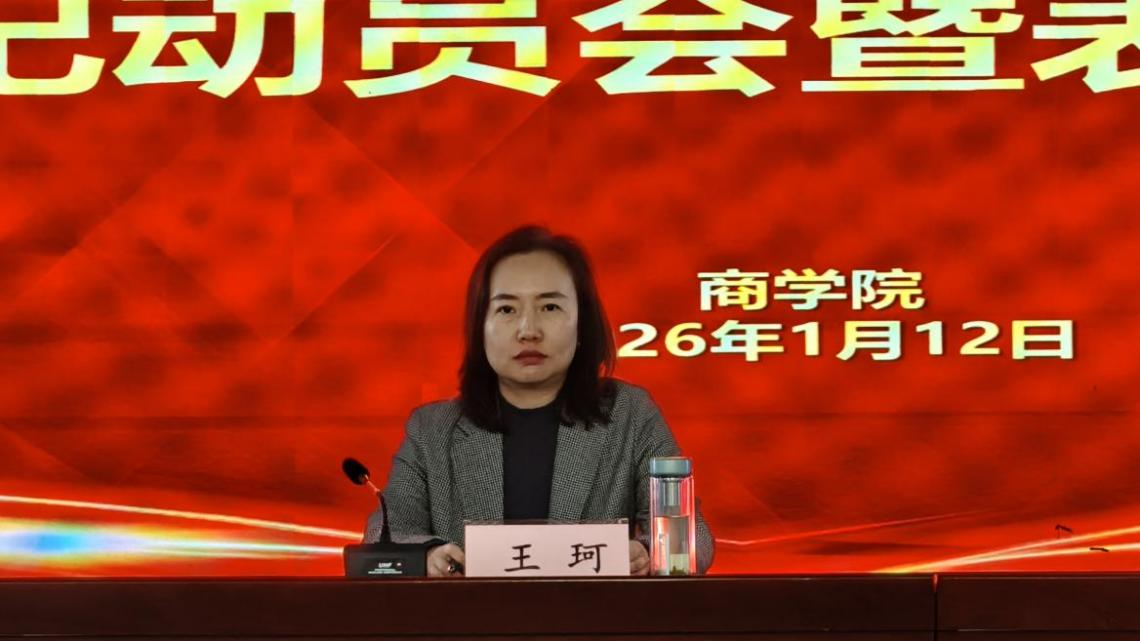 为深入落实立德树人根本任务,弘扬优良学风校风,强化学生诚信应考意识,1月12日,商学院在开封校区北院学生活动中心召开2025年秋季学期考风考纪动员会暨表彰大会。商学院党总支书记荆伟科、院长王珂,副院长刘嘉慧、全体专兼职辅导员及2025级全体学生参会。