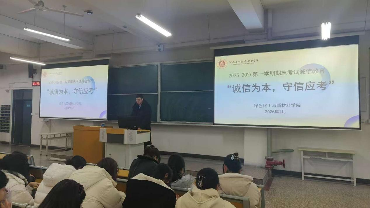 为深入夯实学风建设根基,引导学生树立诚信考试观念,共同营造风清气正的考试环境,绿色化工与新材料学院精心谋划,组织全院各班级开展了诚信教育主题班会。活动覆盖全体学生,旨在以思想引领筑牢诚信应考防线,为期末备考工作注入坚实的精神动力。