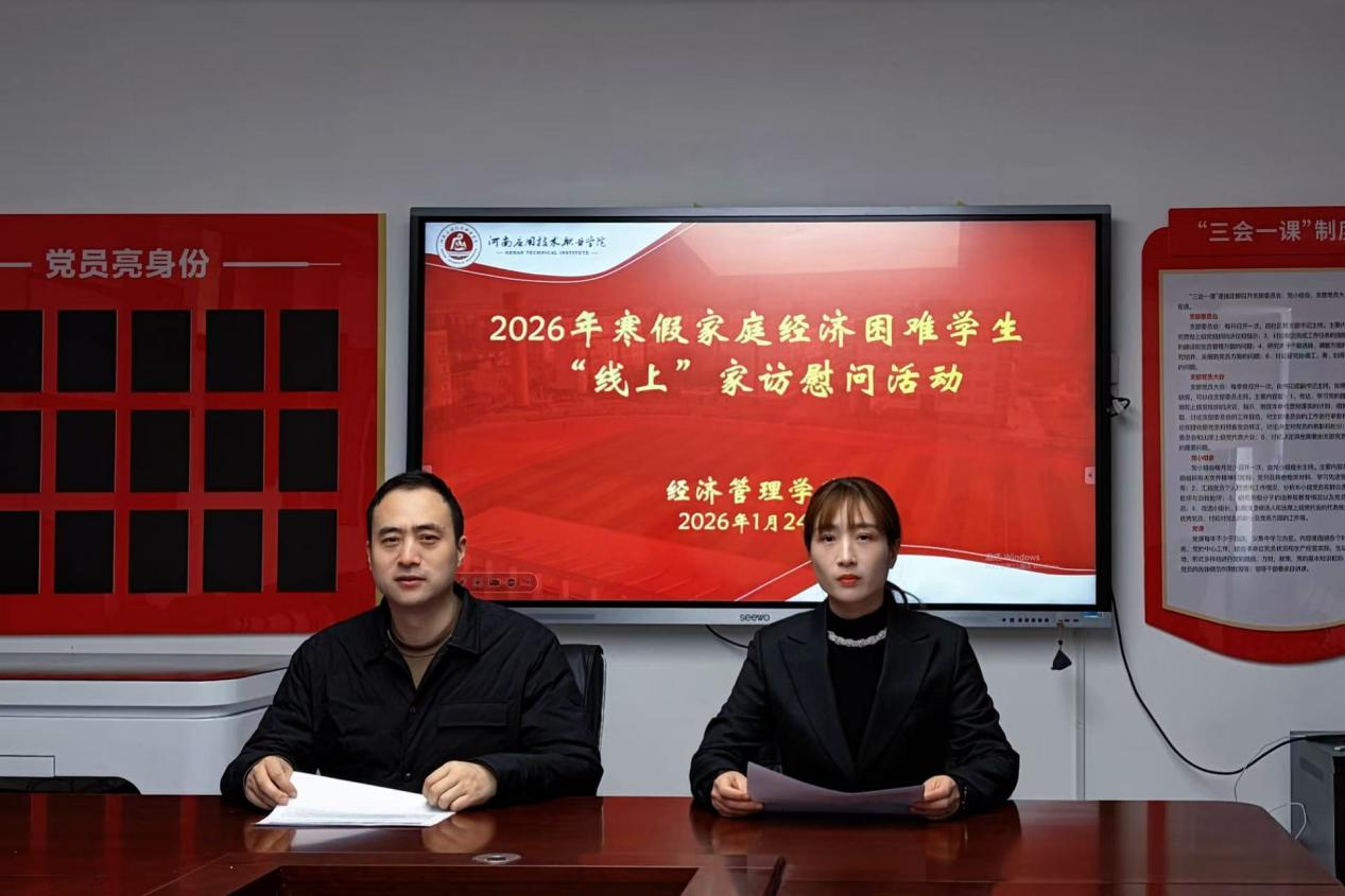 寒假如期而至,关怀从未缺席。为进一步贯彻落实国家资助政策,深化立德树人根本任务,经济管理学院于2026年1月下旬采取“线上+线下”模式,开展系列慰问活动,精准帮扶家庭经济困难学生,切实传递学校关怀,凝聚家校育人合力。