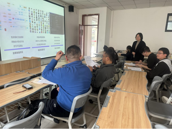 本次答辩工作严格遵循“学生汇报—导师提问—现场点评”的规范流程。参与答辩的学生依次上台进行陈述汇报,结合前期准备的研究基础,重点围绕选题背景、研究思路、理论框架及目前存在的主要困惑四大核心内容,进行了清晰、全面地阐述。学生陈述结束后,答辩老师结合自身教学与科研经验,对每一位学生的开题报告进行精准点评,同时针对性提出切实可行的修改建议,助力学生破解研究困惑、完善研究思路。