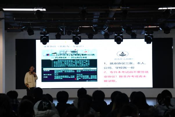 大会主体环节结束后,学院开展专项指导培训,岗位实习专员孙瑞杰讲解职校家园平台使用规范,明确实习报备、日志填写等操作要求;就业专员吴淼对就业平台使用及信息填报进行培训,助力学生掌握相关技能。