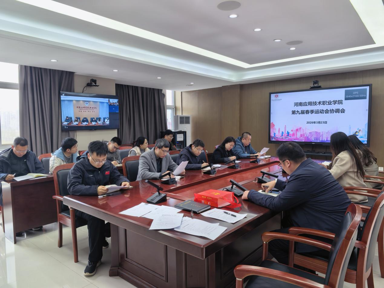 为统筹推进学校第九届春季运动会筹备工作,明确各单位职责分工,确保运动会安全、有序、精彩举办,3月23日上午,我校第九届春季运动会第一次协调会在郑州校区办公楼 315 会议室,开封校区北院316 会议室以视频连线形式顺利召开,会议由体育教学部主任徐涛主持,工会办公室、团委、心理健康中心部门负责人、相关职能部门副职、各二级学院(中心)副书记、团总支书记参加会议。