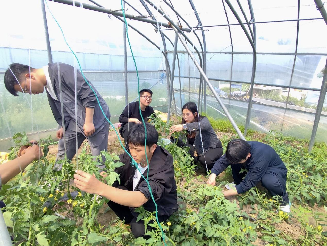 躬身实践,助农惠民。调研结束后,党员同志们走进田间地头,开展助农志愿服务活动。大家分工协作、干劲十足,认真进行农场除草、番茄苗打杈等农事劳作,以实际行动助力农业生产,切实为农户减轻劳作压力,用汗水诠释党员的责任与担当,拉近了校地之间的距离。