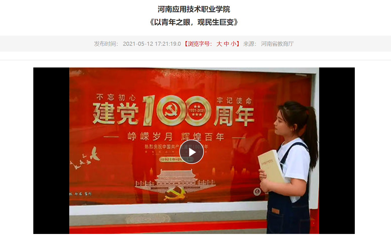 上一条:河南省教育厅:河南应用技术职业学院《跨越百年的青春告白》 下一条:河南省教育厅:河南应用技术职业学院《跨越百年的青春告白》