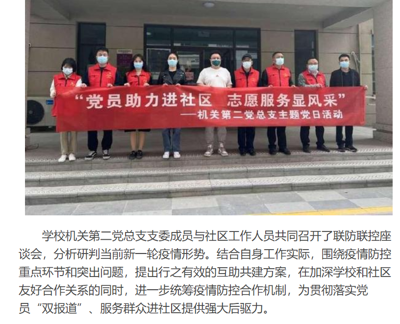 大河网讯 3月11日,河南应用技术职业学院机关第二党总支党员志愿者前往紫韵社区积极开展群防群控对接工作和志愿服务主题党日活动。