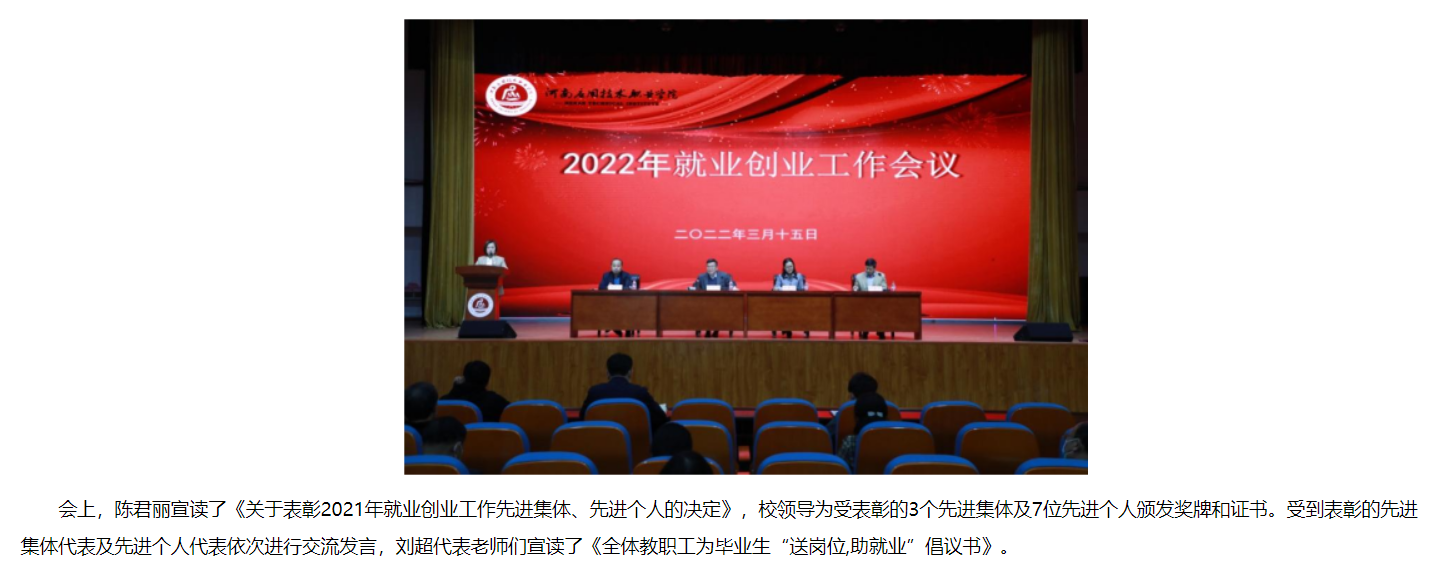 2022年3月15日下午,河南应用技术职业学院2022年就业创业工作会议在学生活动中心召开。校长范晓伟,副校长陈君丽、薄新党出席会议。各二级院部党政负责人、就业专员、相关职能处室负责人参加会议。会议由副校长刘振民主持。