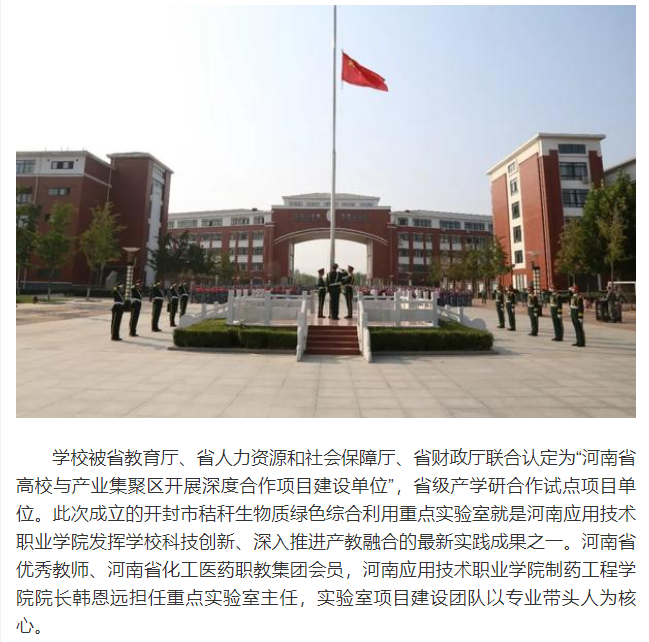 近日,从河南应用技术职业学院传来喜讯,由该校申报的开封市秸秆生物质绿色综合利用重点实验室通过审批立项,学校喜添一家市级生物医药类重点实验室。这也是河南应用技术职业学院近年来加强科研兴校、深化产教融合和服务社会经济发展的最新实践成果。