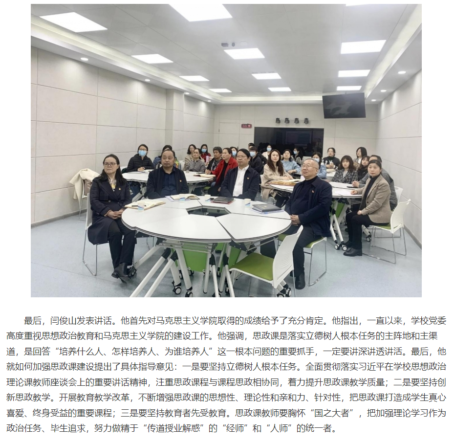4月4日下午,河南应用技术职业学院马克思主义学院组织开展思想政治理论课教学技能“大展示”暨观摩课活动。学校党委书记闫俊山、校长薄新党、副书记朱东方、副校长陈君丽出席活动。本次活动由马克思主义学院院长张振华主持。