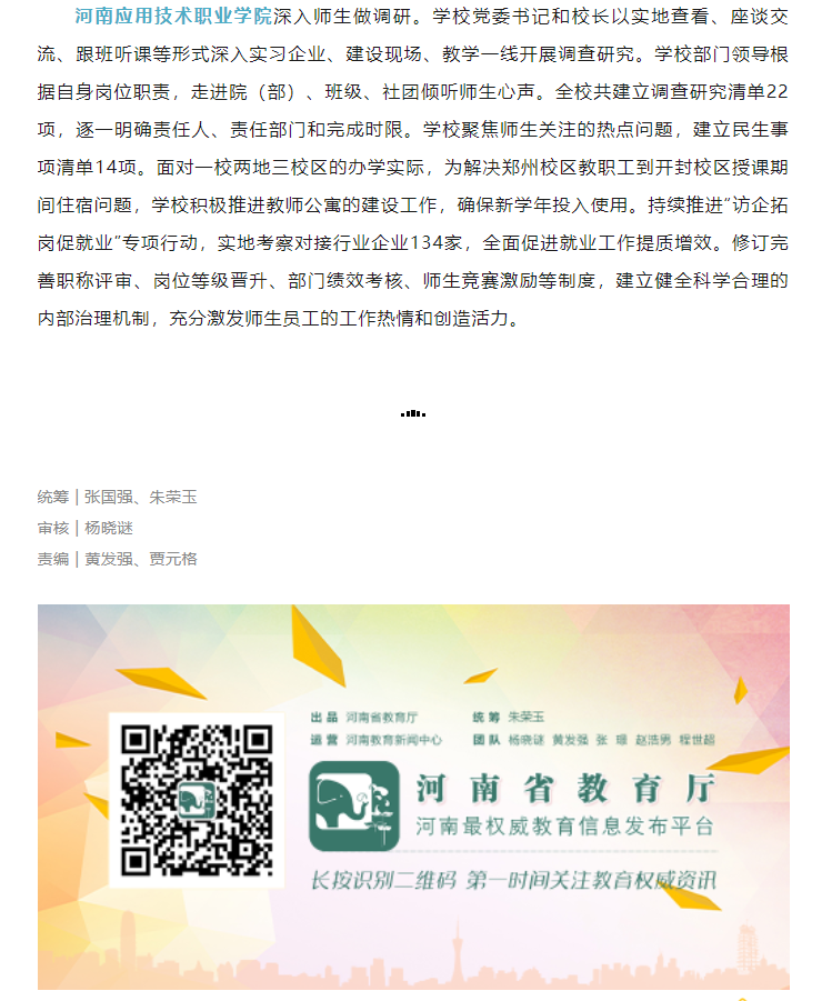 上一条:河南高教、顶端新闻:河南应用技术职业学院校长薄新党带队开展访企拓岗促就业 下一条:河南教育宣传网:深情寄语!河南应用技术职业学院纪委为毕业生写了一封信