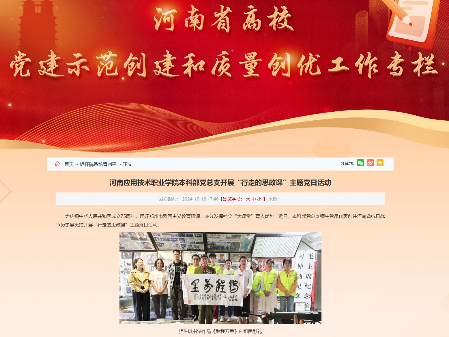 为庆祝中华人民共和国成立75周年,用好郑州市爱国主义教育资源,充分发挥社会“大课堂”育人优势,近日,本科部党总支师生党员代表前往河南省抗日战争历史展览馆开展“行走的思政课”主题党日活动。