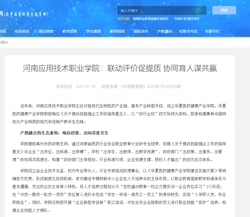 现代高等职业技术教育网:河南应用技术职业学院:联动评价促提质 协同育人谋共赢