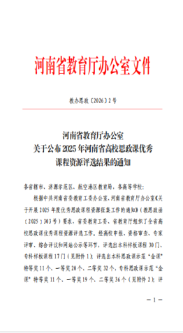 近日,河南省教育厅下发了《关于公布河南省高校思政课优秀课程资源评选结果的通知》(教办思政〔2025〕27号),我校在此次评选活动中喜获佳绩。