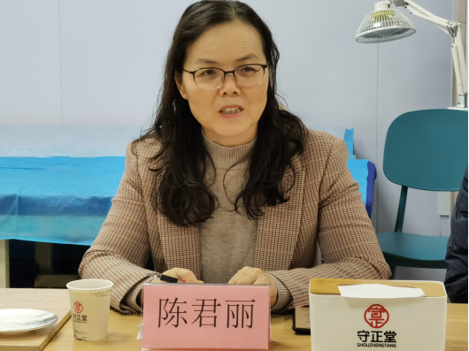 在守正堂国医馆负责人的陪同下,陈君丽一行先后参观了国医馆中医内科、外科、妇科、儿科等核心诊疗区域,针灸推拿科、理疗科诊疗室与非遗特色专科工作室,近距离了解了馆内各级名老中医、知名专家、非遗传承人与中医师组成的专业诊疗团队执业情况,深切感受到企业在传承发展中医药事业过程中,对高技能人才的迫切需求。