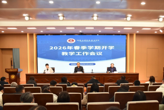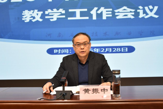 2026年2月28日,学校在郑州校区实训楼A学术报告厅、开封校区北院D102同步召开2026年春季学期开学教学工作会议。副校长黄振中出席会议,相关职能部门负责人、各教学院部院长、副院长(主任、副主任)和教研室主任参会。会议由教务处副处长贺素姣主持。