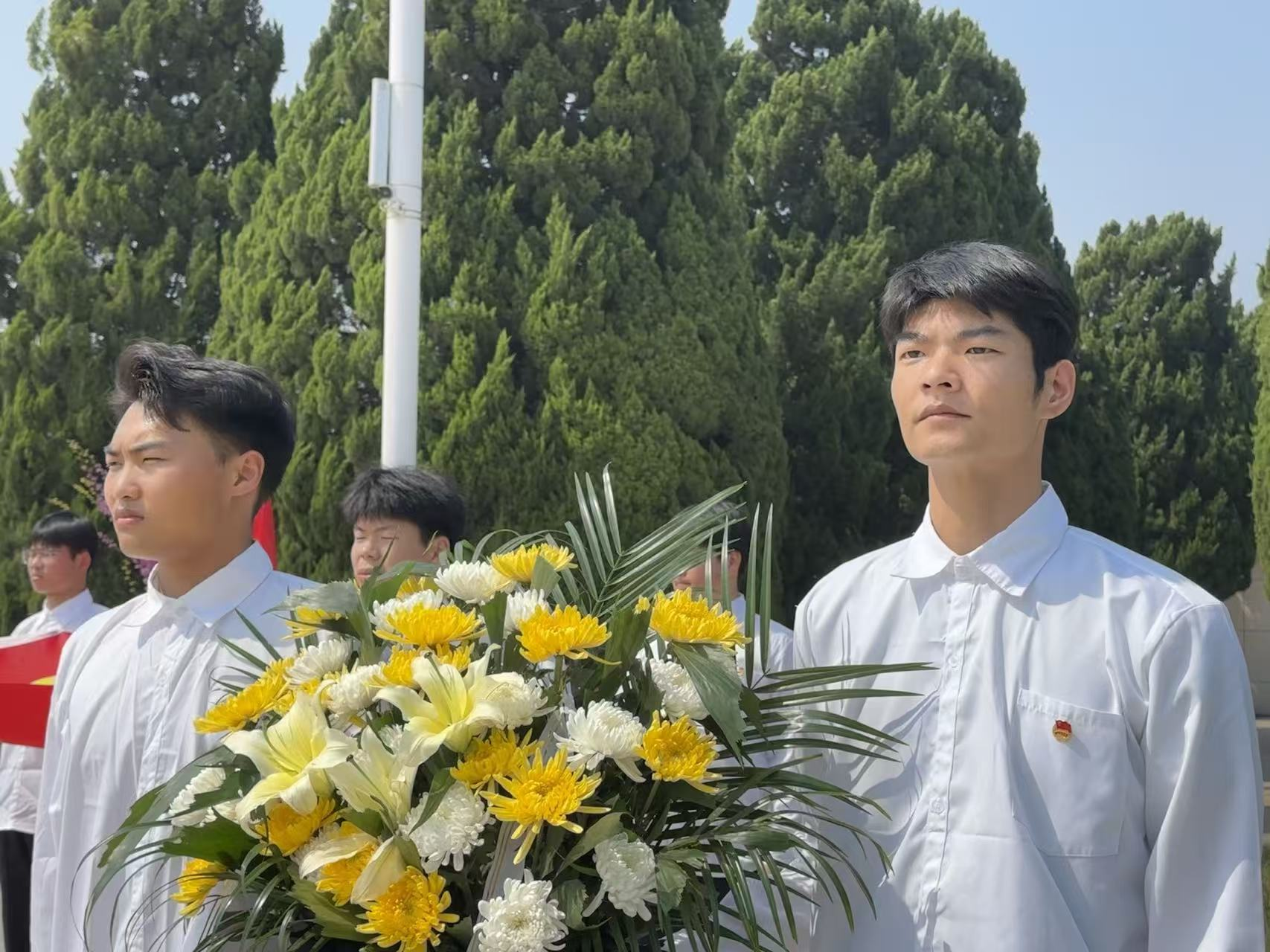 随后,全体学生面向鲜艳的团旗,高举右拳、庄严宣誓,重温入团誓词。铮铮誓言在陵园上空久久回荡,既是对革命先烈的告慰,更是新时代青年坚守初心、勇毅前行的庄严承诺。